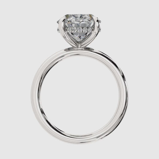 Our Classic Solitaire Engagement Ring features a diamond center stone in any shape, set high in a sculpted setting for maximum brilliance. A hidden halo of pavé diamonds surrounds the center stone for added sparkle. Available in 14K Gold, 18K Gold, Platinum, or Two-Tone 18K Gold/Platinum, this ring offers a classic design that can be worn alone or paired with any wedding band.